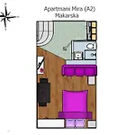 Apartments Mira 马卡尔斯卡设有厨房和配休息区,卫星电视和多频道电视的客房. 从这家公寓到Ratac,走路只需要5分钟.
